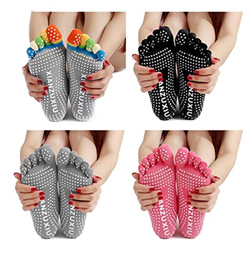 TLT 4 Pairs Full Toe Exercise Yoga Gym Socks Cotton with Grips YD010