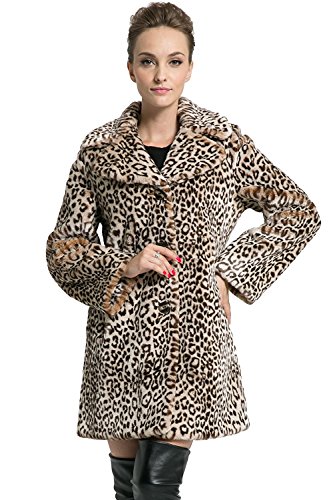 Ovonzo Women's New Style Middle Length Leopard Faux Fur Coat Brown Size M
