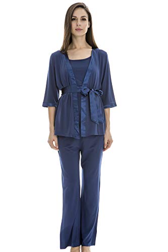 Bearsland Maternity Women's 3 Pieces Soft Nursing Pajamas Set Postpartum Sleepwear for Breastfeeding Blue