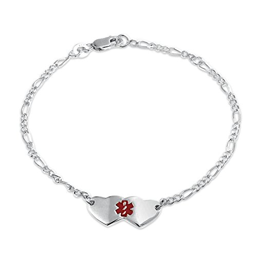 Personalized Heart Shape Medical Identification Doctors Medical Alert ID Bracelet Sterling Silver Custom Engraved