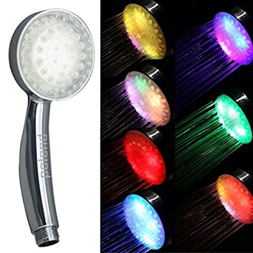 POLEND Rainbow 7 Color Changing LED Light Handheld Showerhead, Bathroom Showerhead, Easy Install, Water Powered (two-year warranty)
