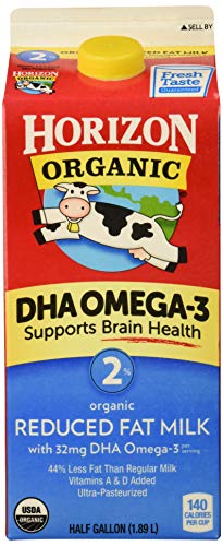 Horizon Organic, 2% Reduced Fat Milk with DHA Omega-3, Ultra Pasteurized, Half Gallon 64 oz