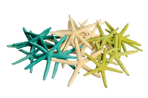 Green, Teal, and Natural Finger Starfish for Decoration, 24