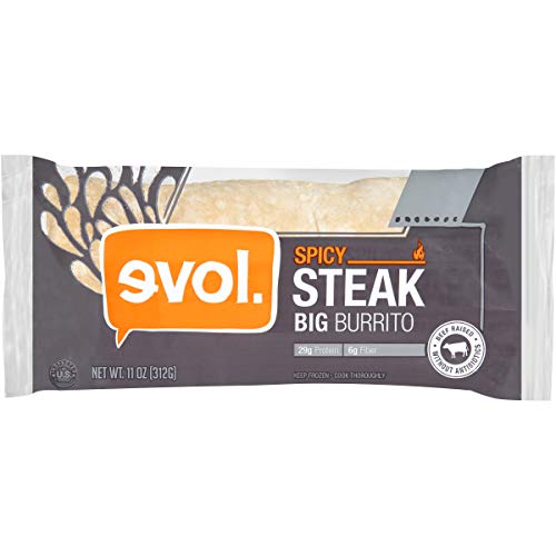 EVOL Spicy Steak Big Burrito, 29 Grams of Protein Per Serving, 11 Ounce (Frozen)