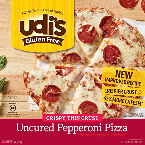 Udi's Gluten Free Uncured Pepperoni and Mozzarella Basil Gourmet Pizza, Frozen, 10 Ounce