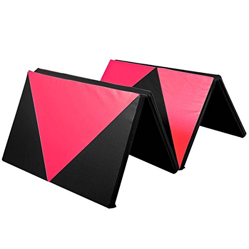 Goplus Thick Folding Panel Gymnastics Mat Gym Fitness Exercise,Pink/Black
