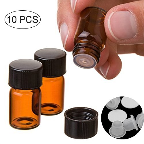 Coolrunner 2 ml (5/8 dram) Amber Glass Essential Oil Bottles Lab Vials with Orifice Reducer and Cap- 10pack (1 ml (1/4 dram), 10 PCS)