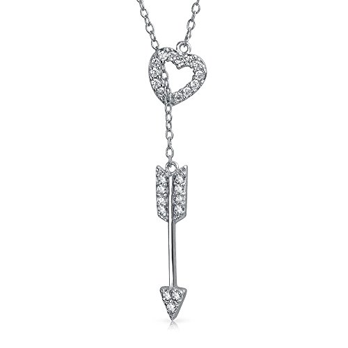 Pave Cubic Zirconia CZ Cupid Arrow Heart Lariat Pendant Necklace For Women For Girlfriend 925 Sterling Silver
