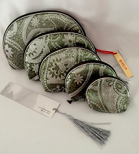JOY-SHANGKU 100% Chinese Silk 5pcs Set Hand Purse/Coin Purse/Makeup Bag(L8" W1" H5")--GREY