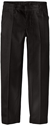 Smith's American Big Girls' Flat Front Straight Leg Twill Pant, Black, 16