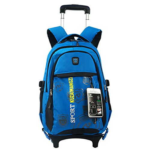 Lalawow Healthy Design 2 in 1 Sturdy Separable Boys Girls Waterproof Nylon School Backpack with Wheeled Trolley Hand, Luggage Bags, Kids Travelling Bags, Hiking Bags, Shoulder Bags for Pupils Primary School Students (Blue)