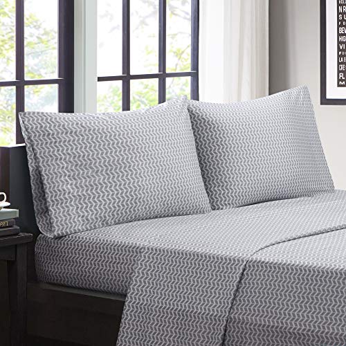 Intelligent Design Wrinkle Resistant, Soft Sheets with 12" Pocket Modern, All Season, Cozy Bedding-Set, Matching Pillow Case, Full, Chevron Grey 4 Piece