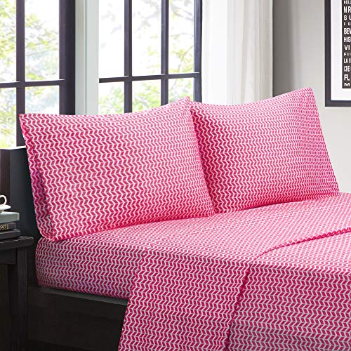 Intelligent Design Wrinkle Resistant, Soft Sheets with 12" Pocket Modern, All Season, Cozy Bedding-Set, Matching Pillow Case, Full, Chevron Pink 4 Piece