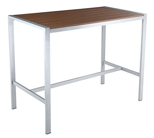 Cortesi Home CH-DT700104 Lola Outdoor Long Bar Table, Height, Silver/Teak