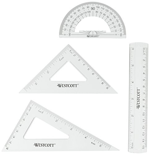 Westcott 4 Piece Flexible Math Tools Set, Assorted Colors, Green/Clear (15992)