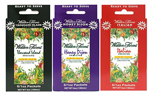 3 Boxes (18 Packets): Walden Farms Salad Dressing 1 Oz Packets (Thousand Island-Honey Dijon-Italian)