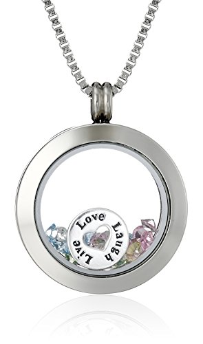 Charmed Lockets Swarovski Crystal "Live Laugh Love" Charm Round Locket Necklace