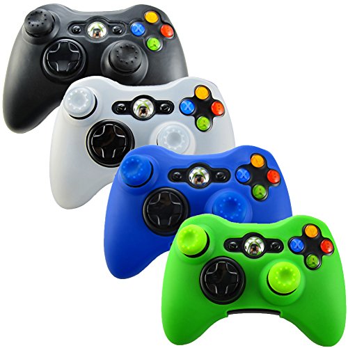 Pandaren Soft Silicone Skin for Xbox 360 Controller Set(Skin X 4 + Thumb Grip X 8)(Black,White,Blue,Green)