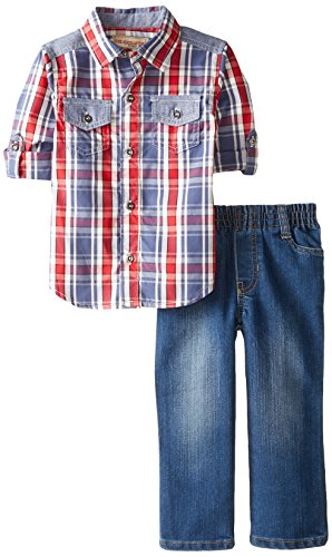 Kids Headquarters Little Boys' Red Blue Plaid Shirt with Pants