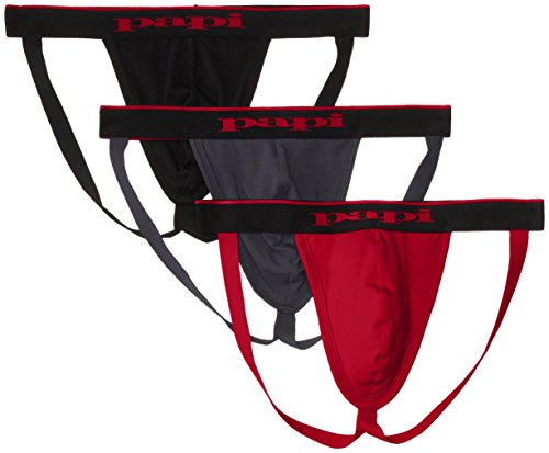 papi Men's 3-Pack Cotton Stretch Jock Strap, Red/Grey/Black, Large