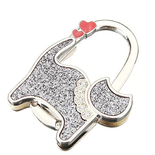 WannaBi Textured Shimmery Metal Cat Shape Handbag Bag Purse Hanger Table Hook Holder Silver