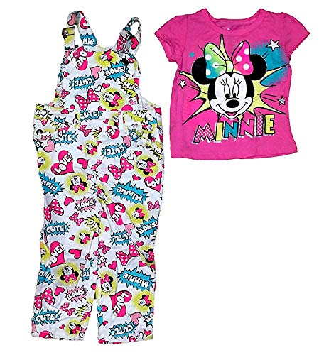 Disney Minnie Mouse Baby Girl T Shirt & Comic Print Overalls Outfit - Pink Blue