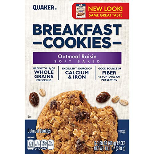 Quaker Breakfast Cookies, Oatmeal Raisin, 10.1oz Cookies Per Box