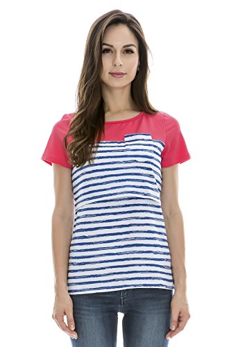 Bearsland Maternity Women's Striped Breastfeeding Shirts Maternity Nursing Tops Blue/White