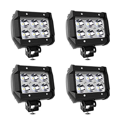 TURBOSII 4Pcs 4Inch Spot Beam 18W Led Work Light Bar Pods Cube Driving Fog Lights For Ford Jeep Toyota Polaris RZR Ranger Can Am Boat Offroad 4wd Truck Pickup SUV Van ATV UTV Tractor Lamp 12-24V