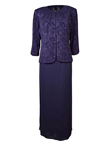 Alex Evenings Womens Petites Glitter Full-Length Dress With Jacket Purple 6P