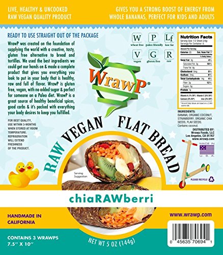 Wrawp Raw Vegan Flat Bread, chiaRAWberri, Paleo, 5.3 Oz, 3 Wraps