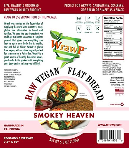 Raw Vegan Flat Bread, Smokey Heaven, Paleo, 5.3 Oz, 3 Wraps
