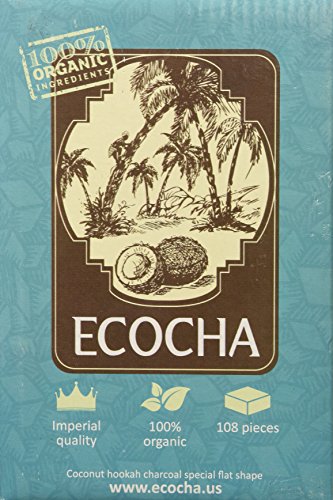 Ecocha Coconut Hookah Charcoal - 100% Organic Coco Coal - 108 Pieces