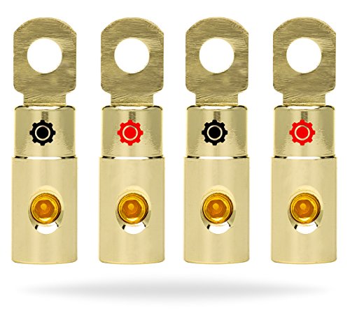 InstallGear 4 AWG Gauge Gold Ring Set Screw Battery Ring Terminals (4 Pack)