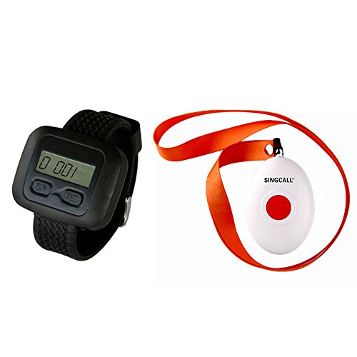 SINGCALL Wireless Calling System, Long Distance Nursing Calling, 1 Necklace Pager and 1 Watch Receiver, Home Caring Old People Patients Children