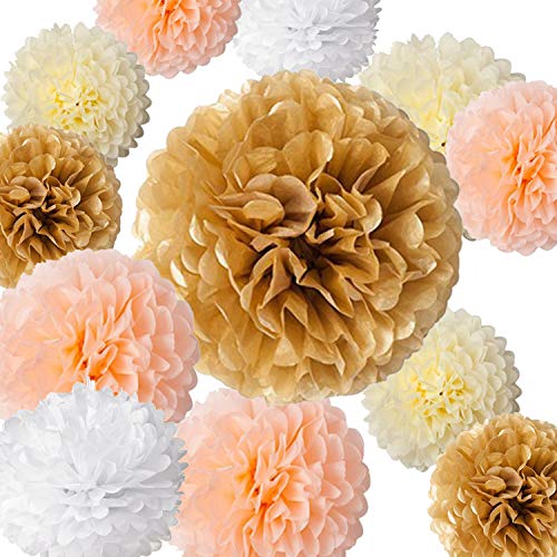 Kubert Party Tissue Paper Flowers of 8, 10, 14-Inch, 18 Pieces, Assorted Colors