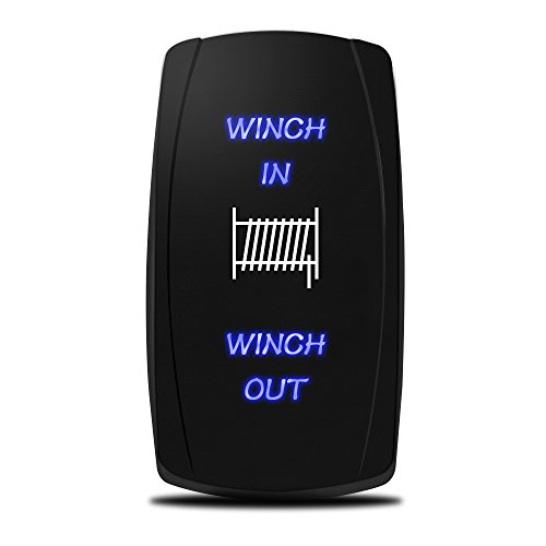 MICTUNING LS09901 7 Pin Momentary Laser Rocker Switch Winch in/Out, 20 Amp/12V, Light Blue