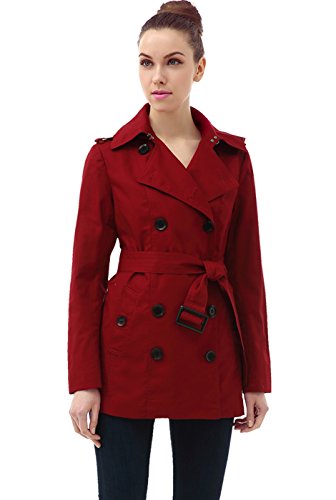 BGSD Women's Evelyn Classic Hooded Short Trench Coat - Navy M
