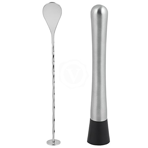 Stainless Steel Cocktail Muddler and Mixing Spoon Set By Varvino with a! - Make Flavorful Cocktails with Ease!