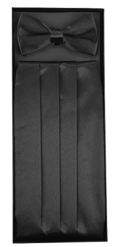 Moda Di Raza- Men's/Boys Satin Bowtie and Cummerbund Set Tuxedo - Black Men