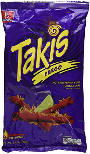 Bracel, Takis, Fuego Hot Chili Pepper & Lime Tortilla Chips, 9.9-Ounce Bag(280g), pack of 2