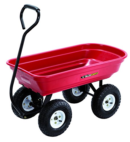 Gorilla Cart GOR100-14 Poly Garden Cart with Curved Handle, 400-Pound Capacity, 34.25-Inch by 18-Inch Bed, Red Finish