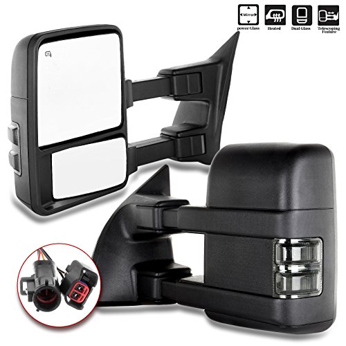 Towing Tow Mirrors Power Heated Dual Glass for 99-02 Ford F250 F350 F450 F550 Super Duty Left&right Passenger&driver Side View Mirror Pair Set Telescoping Folding Black Textured