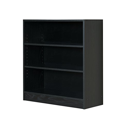 Mylex Three Shelf Bookcase; Two Adjustable Shelves; 11.63 x 29.63 x 31.63 Inches, Black, Assembly Required (43064)
