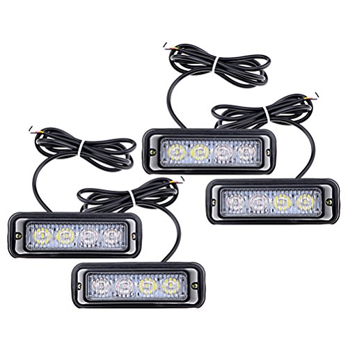 Astra Depot 4pcs 4-LED White Amber Waterproof Emergency Beacon Flash Caution Strobe Light Bar 16 different flashing Car SUV Pickup Truck Van