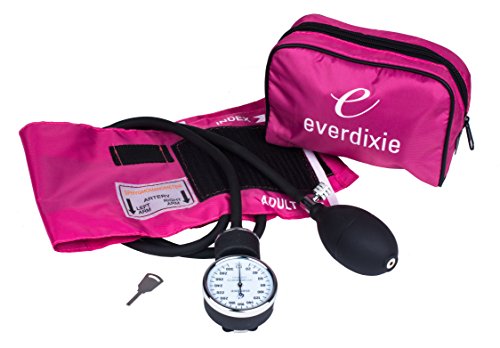 Dixie Ems pink deluxe aneroid sphygmomanometer blood pressure set with adult cuff, nylon pink carrying case and calibration key