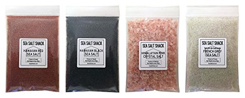 Sea Salt Shack Classic Variety 4 Pack | Himalayan Pink Crystal Salt, French Grey Sea Salt, Red Alaea Hawaiian Sea Salt, Black Lava Hawaiian Sea Salt (2oz Each)