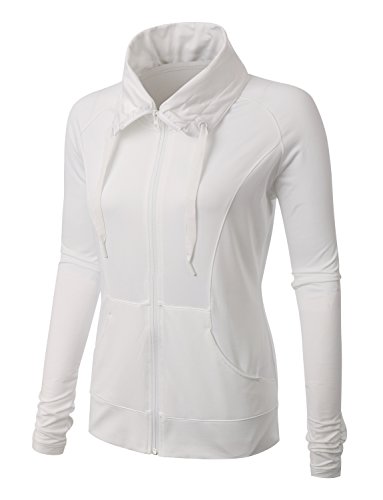 LE3NO Premium Womens Active Full Zip Up Cowl Neck Running Sports Jacket