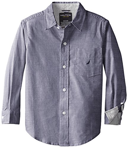 Nautica Boys' Chambray Woven Shirt with Jersey Trim