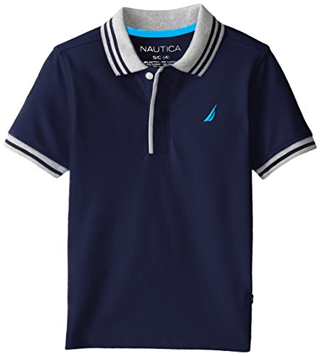 Nautica Boys' Short Sleeve Solid Pique Tipped Collar Polo Shirt